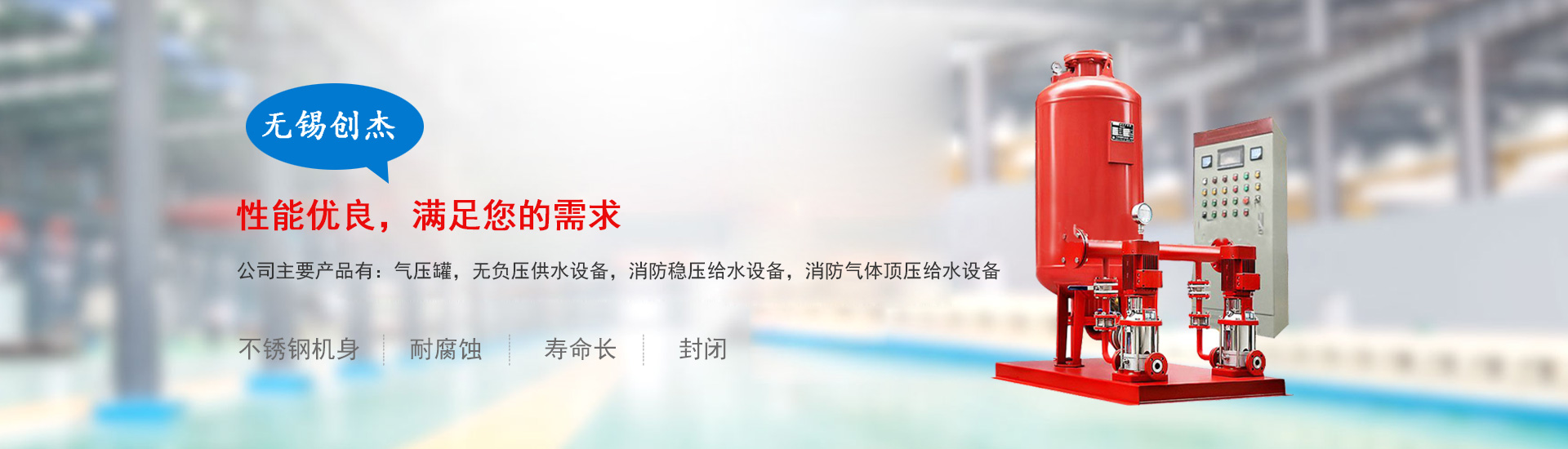 熱門關(guān)鍵詞: 氣壓罐 消防穩(wěn)壓給水設(shè)備 無負(fù)壓供水設(shè)備 氣體頂壓消防供水設(shè)備 壓力容器