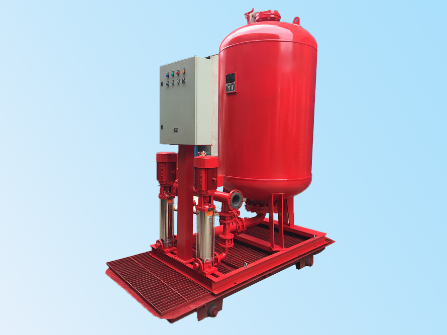 常規情況下配備兩臺性能完全相同的穩壓泵一用一備(亦可互為備用),平時兩臺穩壓泵自動交替工作,其中一臺穩壓泵發生故障時,另一臺穩壓泵自投入使用;氣壓罐是必不可少的儲能、保壓設備,在設備停機時為消防管網供水,維持管網壓力同時也能消除管網內水錘現象;電氣控制柜根據壓力輸入信號控制水泵啟停,實現設備自動運行控制。我公司可以根據用戶需求,定制遠程控制功能(如需該功能,用戶需在訂貨時另行說明)。